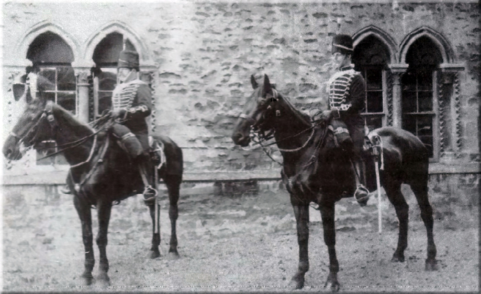 Two mounted Leicestershire Yeoman in front of Oakham