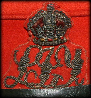 crowned garter "GR" (Left side) and white over red plume (right). Later version