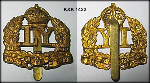 Officer's Cap Badge c1913-15 ( "I.Y." Scroll collar badge
