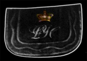 embroidered with gold Crown and silver wire 'LYC' cipher resting