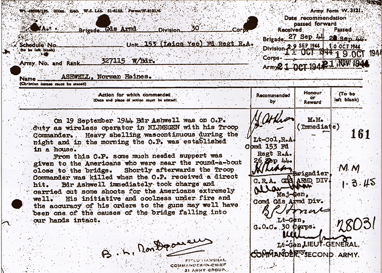 Wounded, 26th April 1945. Mentioned in Despatches.
