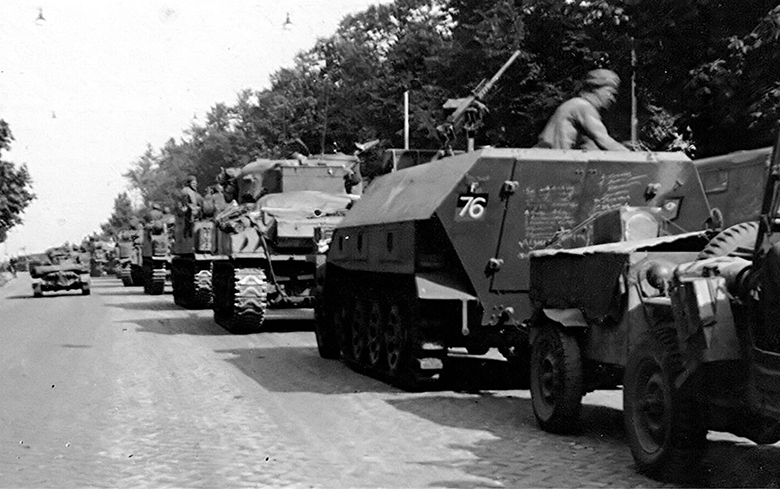 the back of the photo: 18/6/45 20 Minutes halt on the autobahn