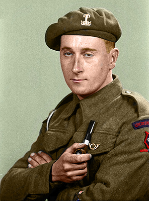 soil in the sector. The WW2 censor has masked out the LY cap badge.